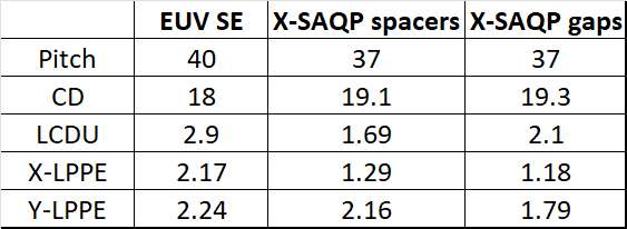 Significantly higher EUV doses would lead to unwanted throughput loss [7] as well as resist loss [8]. There are other possible alternatives to X-SAMP which are cheaper than EUV, including directed self-assembly (DSA) [5] and nanoimprint [9], but for now, X-SAQP does have the weight of being a process on record (POR).